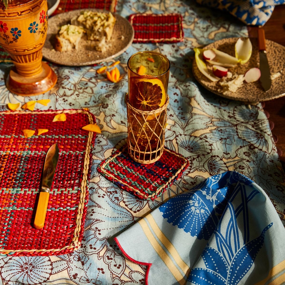 Brighten up your table with the Isla Coaster Set in Crimson by Sage x Clare. These woven seagrass coasters in cheerful red and blue tones add a splash of warmth and texture, making every sip feel like a mini celebration. Practical and pretty, they’re the perfect little detail to keep your surfaces safe and your style on point.