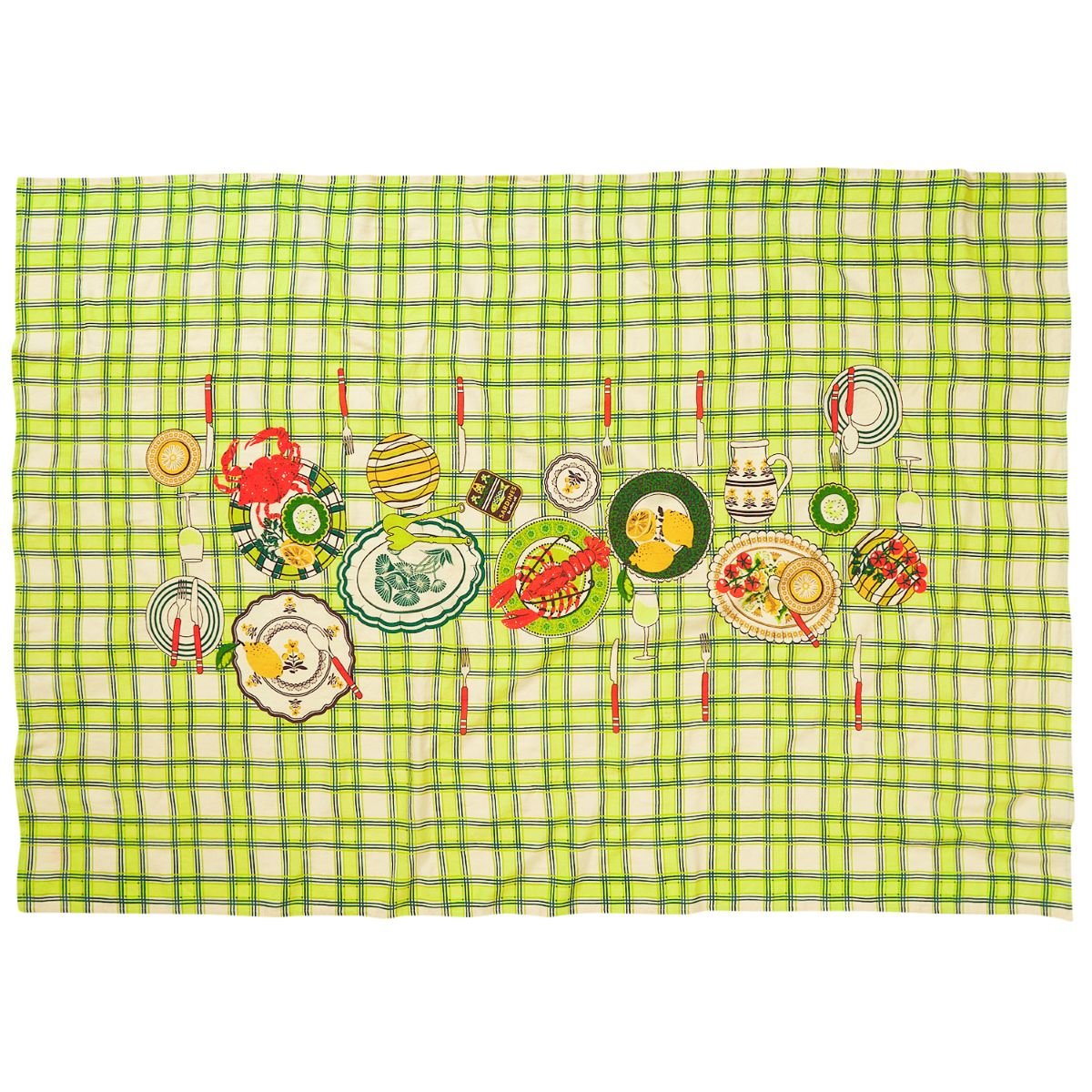 Bring the vibrant spirit of a Mediterranean feast to your dining table with the Isla Linen Table Cloth by Sage x Clare. Featuring bright green checks and a lively design featuring a table ready laid, this luxurious linen adds a splash of fun and elegance to every meal. Perfect for casual gatherings or special occasions, it brightens your space with playful charm and durable style.